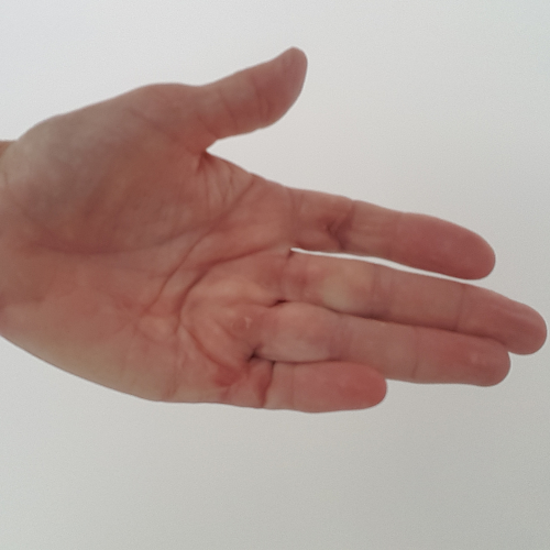 - apparition d’ombilication de la peau de la paume de la main